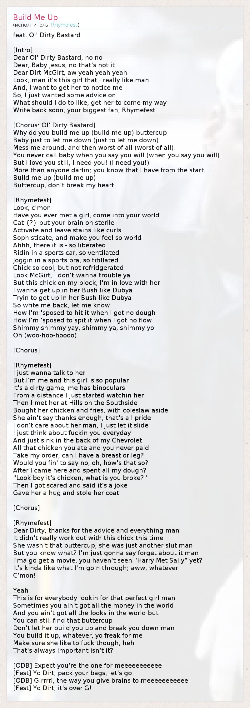 А как ты думаешь, о чем песня "Build Me Up" ?