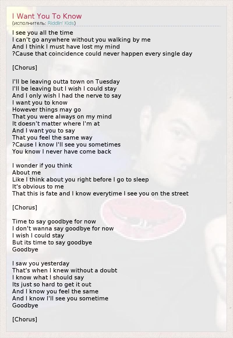 А как ты думаешь, о чем песня "I Want You To Know" ?