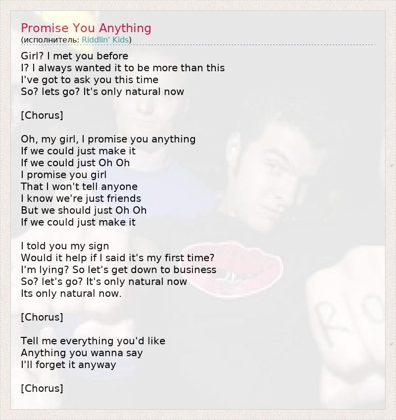А как ты думаешь, о чем песня "Promise You Anything" ?