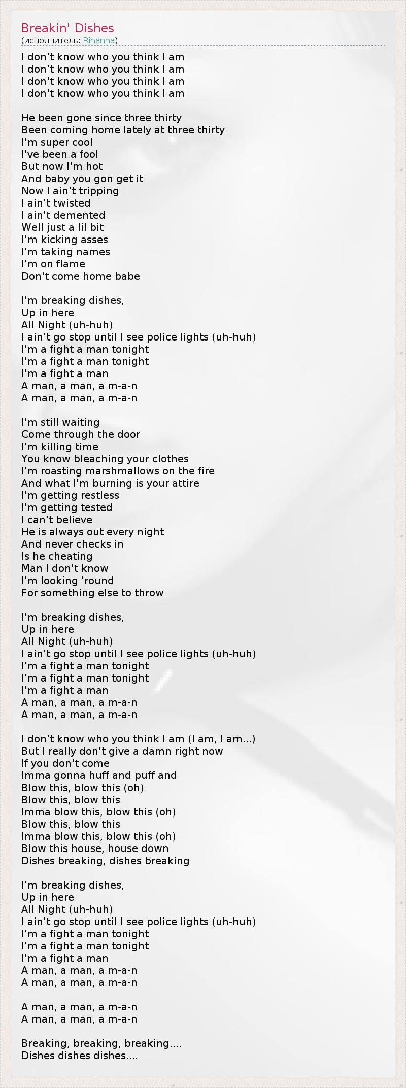 А как ты думаешь, о чем песня "Breakin' Dishes" ?