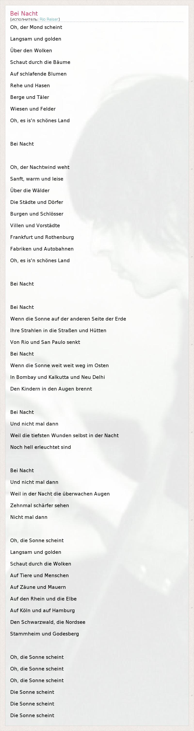 А как ты думаешь, о чем песня "Bei Nacht" ?