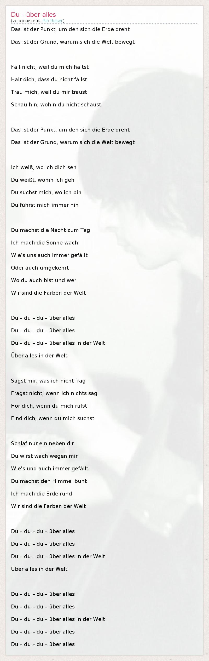 А как ты думаешь, о чем песня "Du - über alles" ?