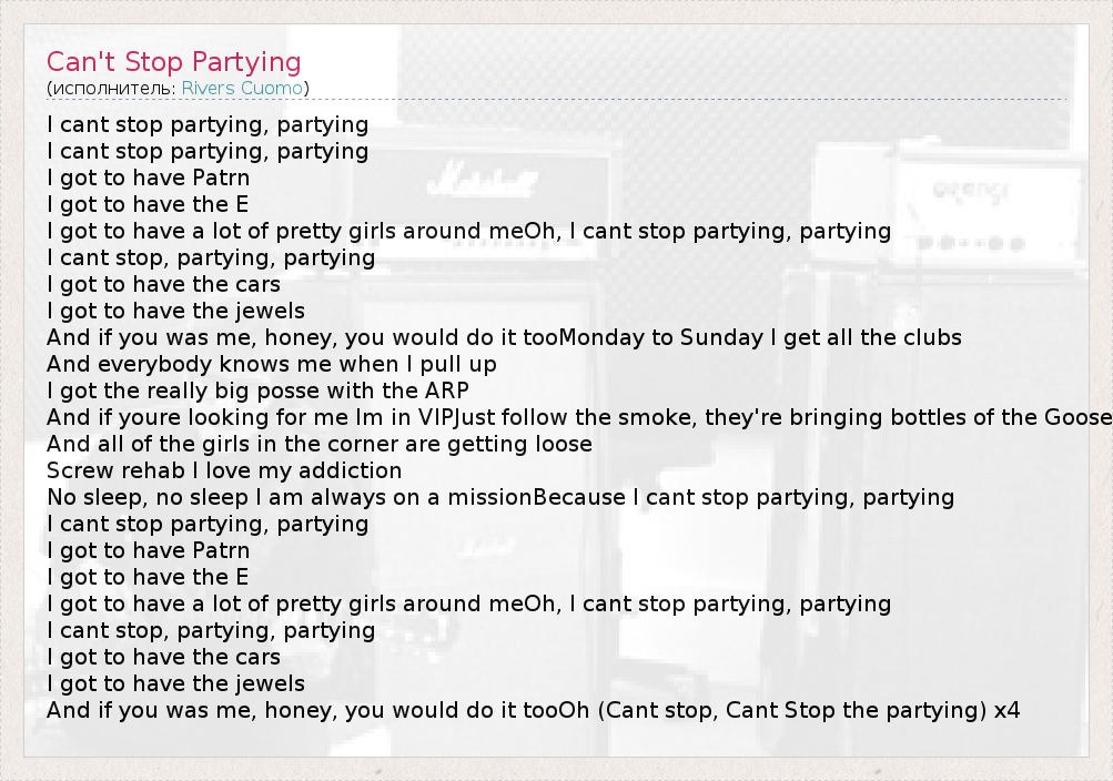 А как ты думаешь, о чем песня "Can't Stop Partying" ?