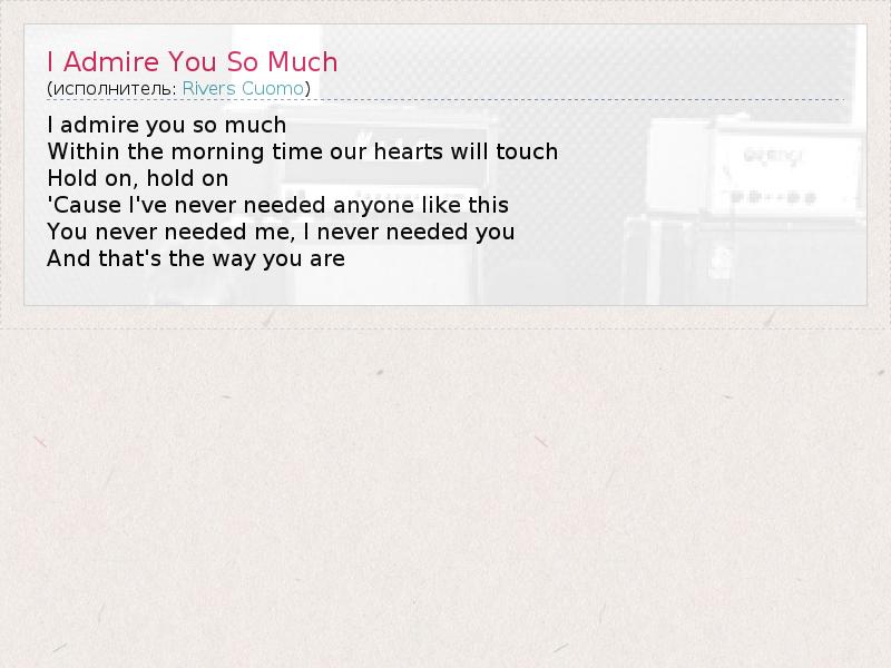 А как ты думаешь, о чем песня "I Admire You So Much" ?