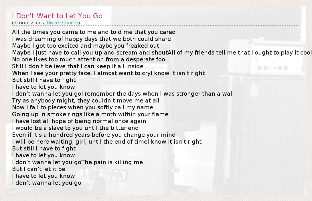 ГлавнаяИсполнителиRivers CuomoI Don't Want to Let You Go