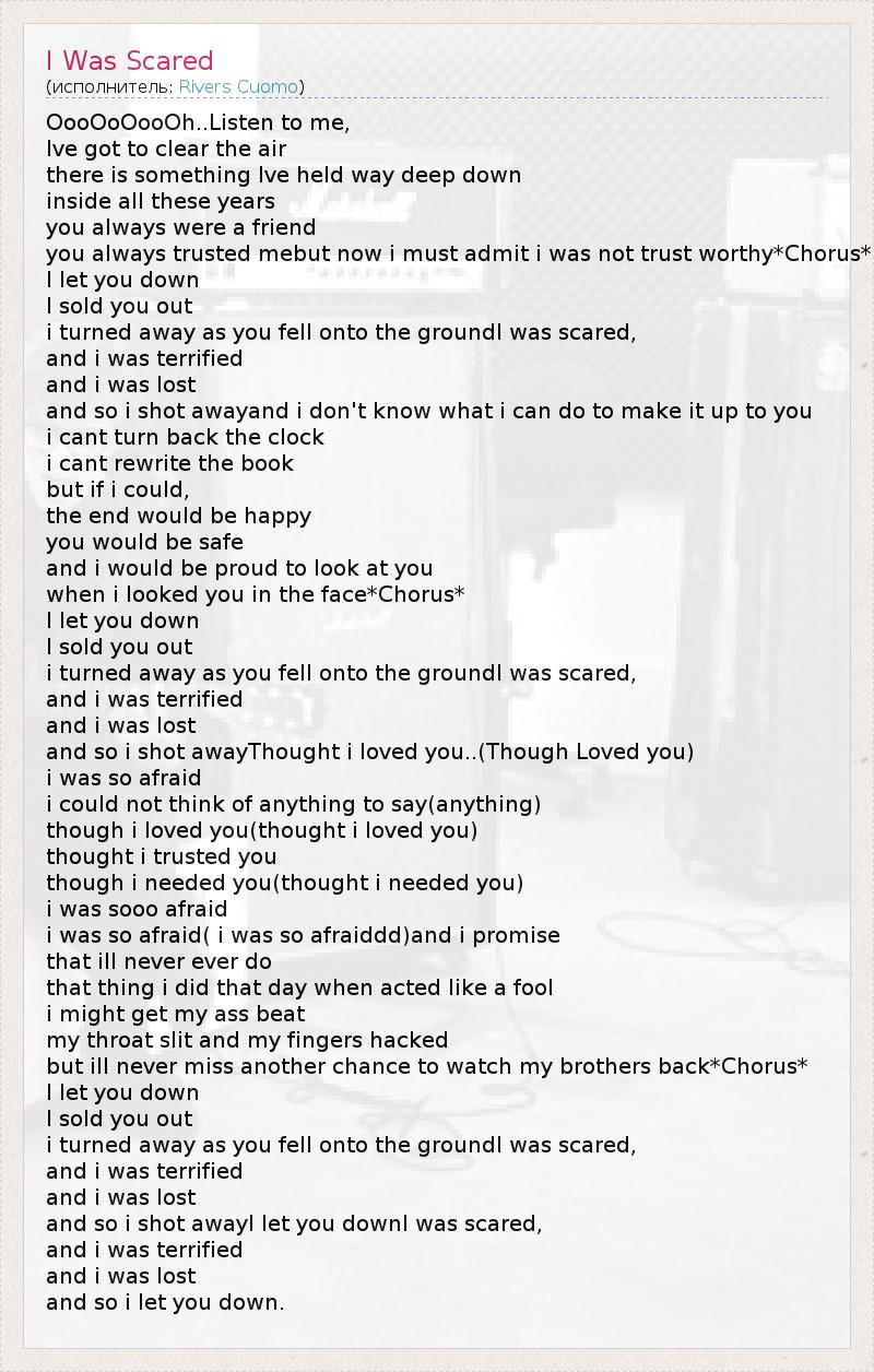 А как ты думаешь, о чем песня "I Was Scared" ?