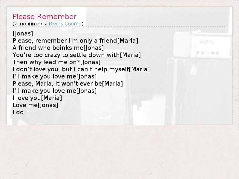 А как ты думаешь, о чем песня "Please Remember" ?