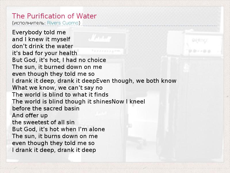 А как ты думаешь, о чем песня "The Purification of Water" ?