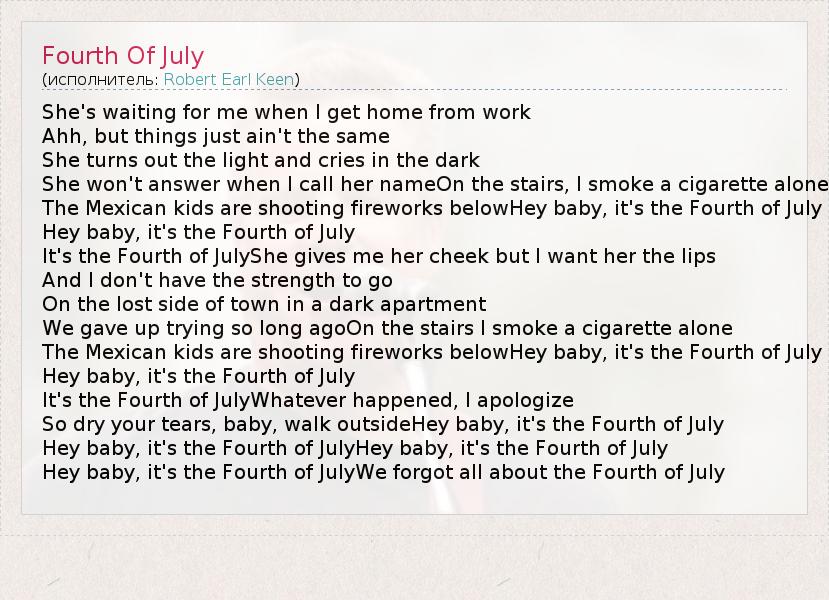 А как ты думаешь, о чем песня "Fourth Of July" ?
