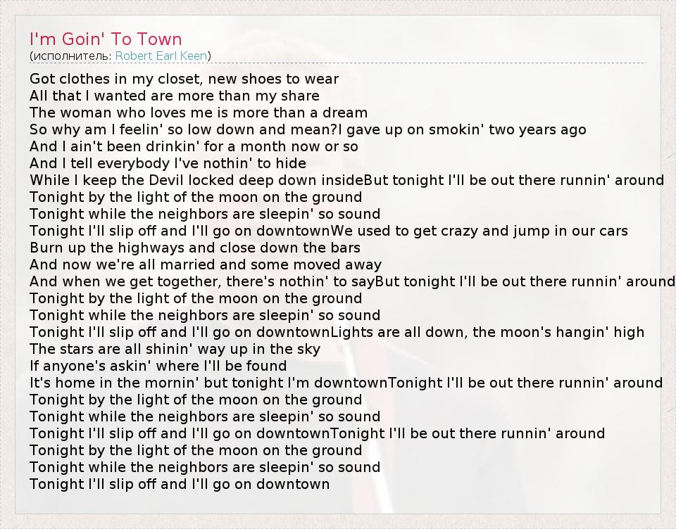 А как ты думаешь, о чем песня "I'm Goin' To Town" ?