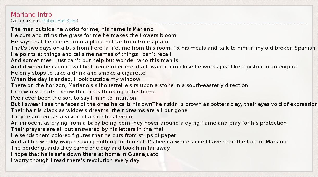 А как ты думаешь, о чем песня "Mariano Intro" ?