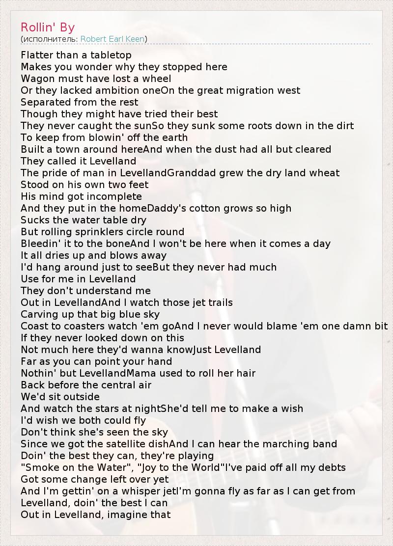 А как ты думаешь, о чем песня "Rollin' By" ?