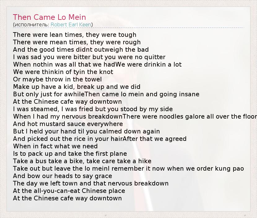 А как ты думаешь, о чем песня "Then Came Lo Mein" ?
