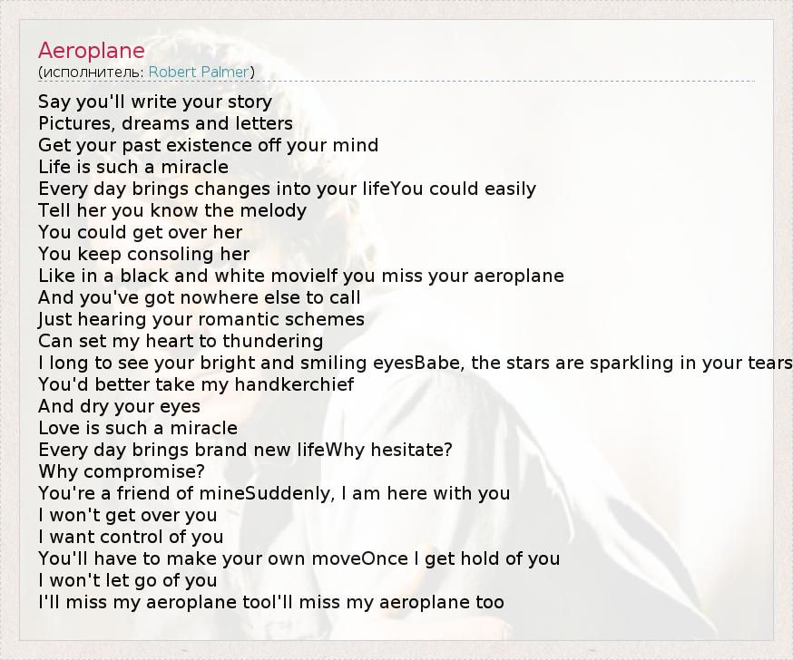 А как ты думаешь, о чем песня "Aeroplane" ?