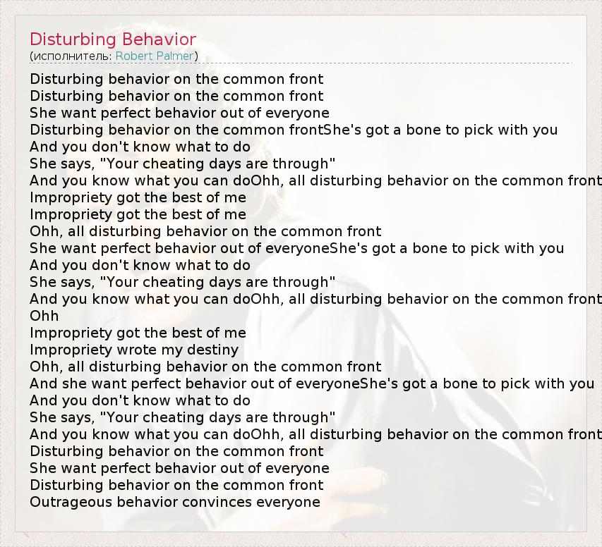 А как ты думаешь, о чем песня "Disturbing Behavior" ?