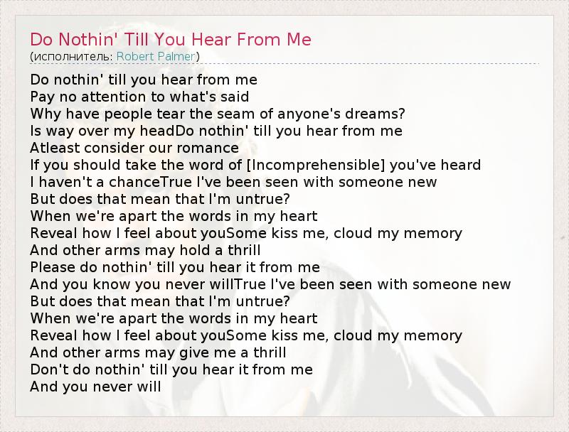 А как ты думаешь, о чем песня "Do Nothin' Till You Hear From Me" ?