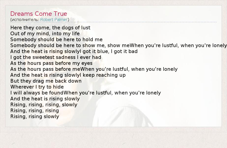 А как ты думаешь, о чем песня "Dreams Come True" ?