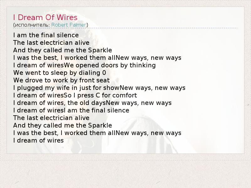 А как ты думаешь, о чем песня "I Dream Of Wires" ?
