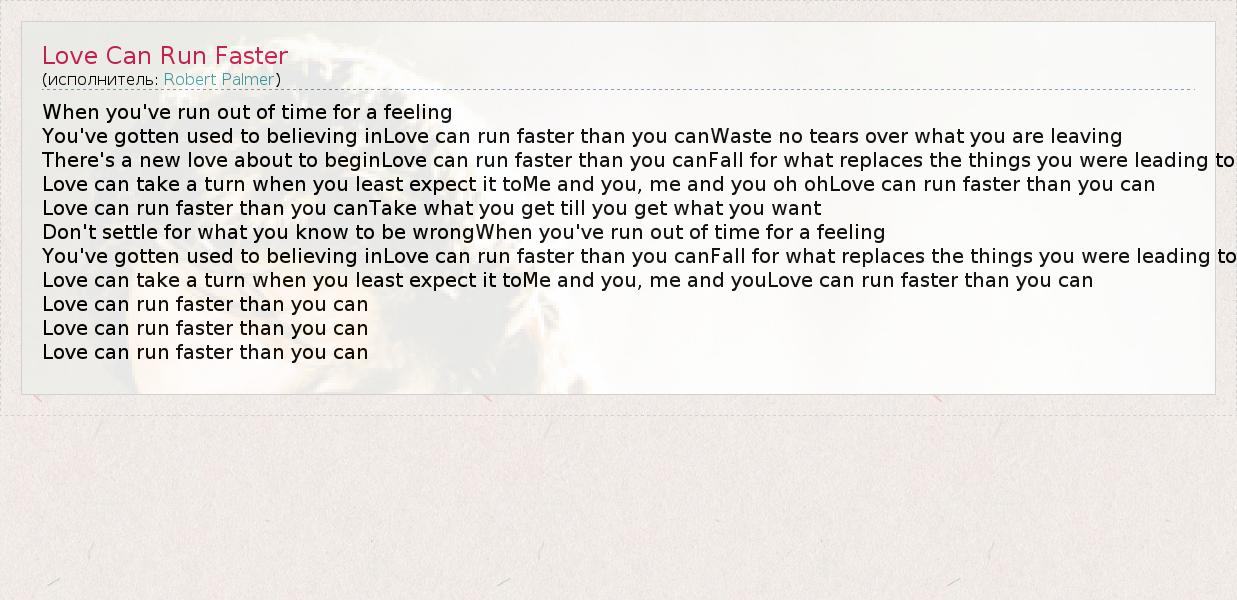 А как ты думаешь, о чем песня "Love Can Run Faster" ?