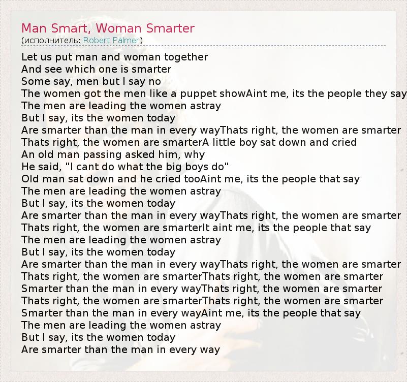 А как ты думаешь, о чем песня "Man Smart, Woman Smarter" ?