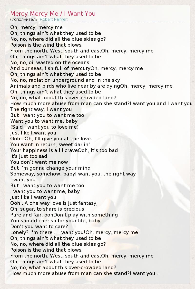 А как ты думаешь, о чем песня "Mercy Mercy Me / I Want You" ?