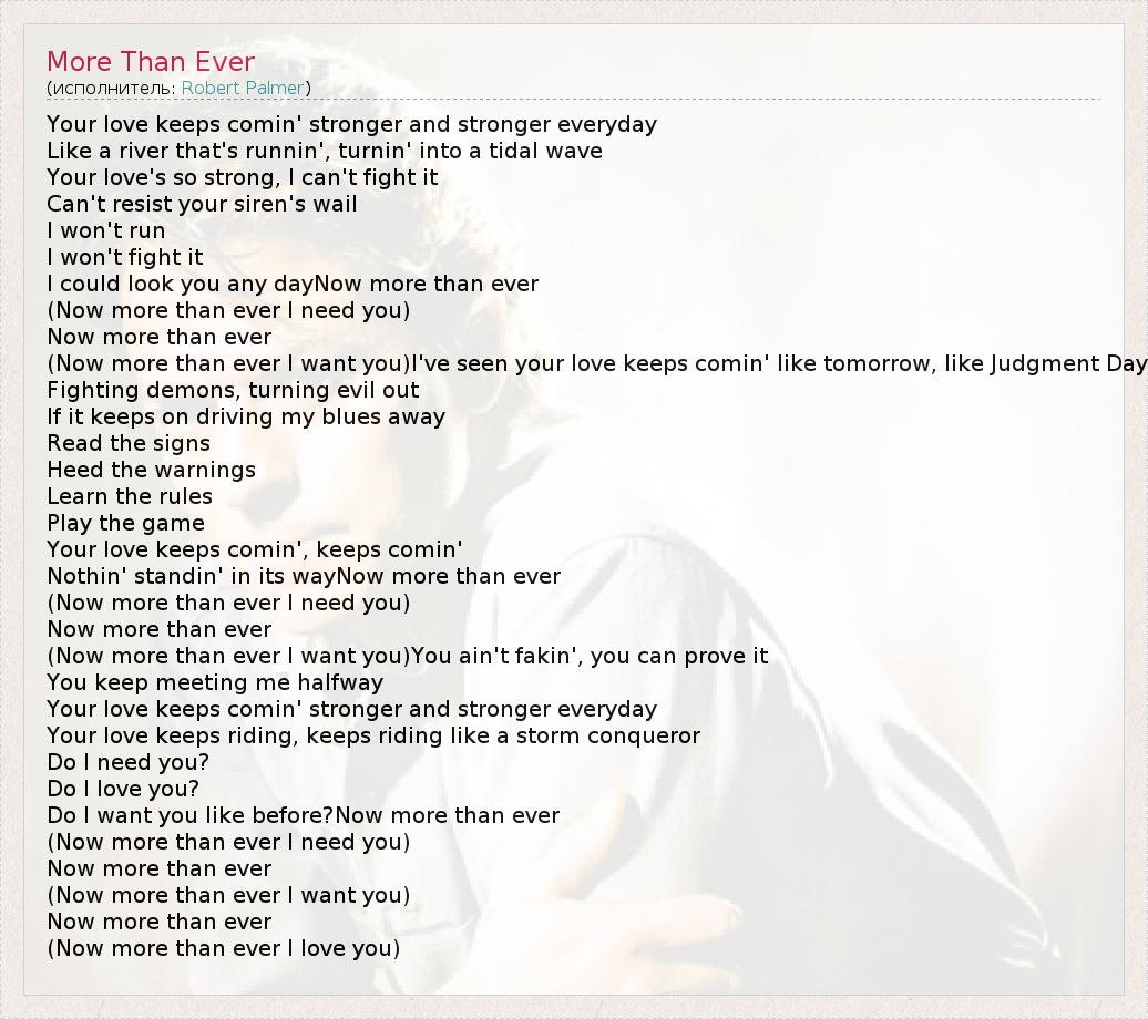 А как ты думаешь, о чем песня "More Than Ever" ?