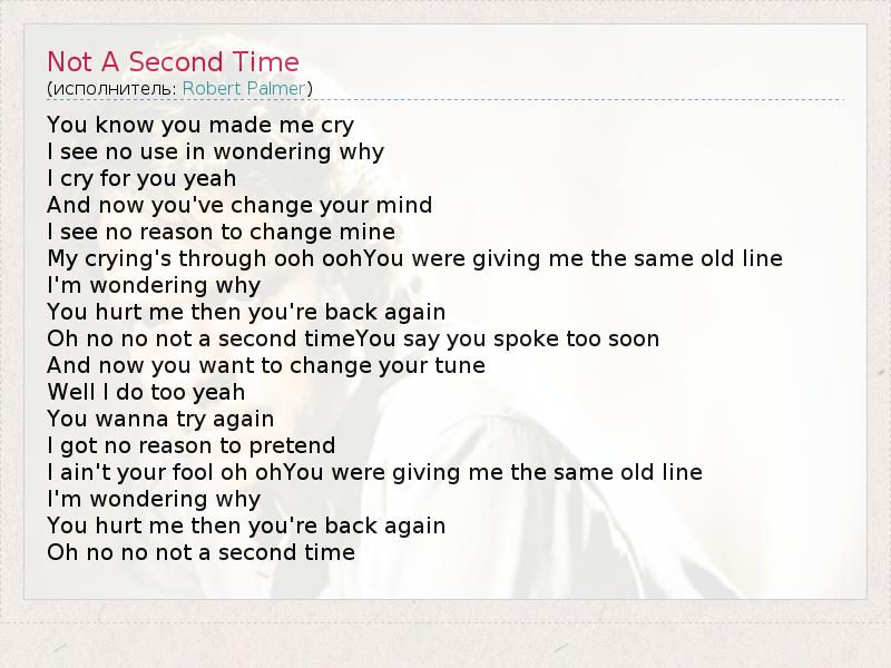А как ты думаешь, о чем песня "Not A Second Time" ?