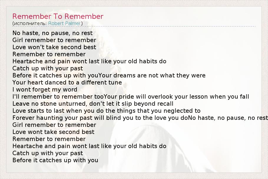 А как ты думаешь, о чем песня "Remember To Remember" ?