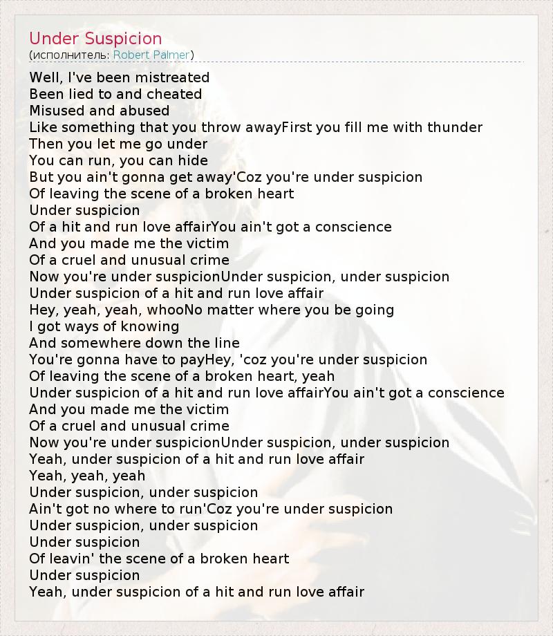 А как ты думаешь, о чем песня "Under Suspicion" ?