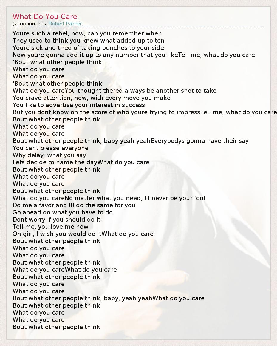 А как ты думаешь, о чем песня "What Do You Care" ?