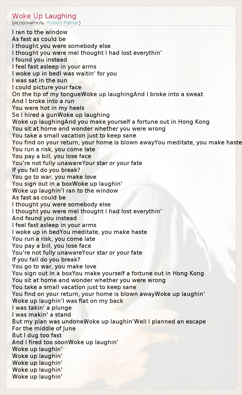 А как ты думаешь, о чем песня "Woke Up Laughing" ?