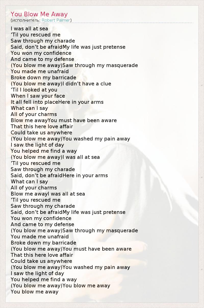 А как ты думаешь, о чем песня "You Blow Me Away" ?