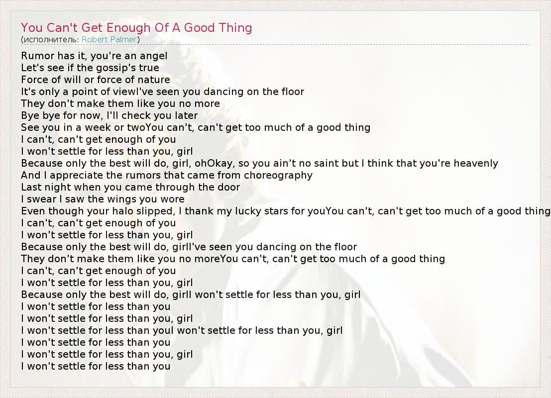А как ты думаешь, о чем песня "You Can't Get Enough Of A Good Thing" ?