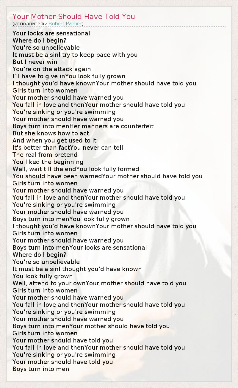 А как ты думаешь, о чем песня "Your Mother Should Have Told You" ?