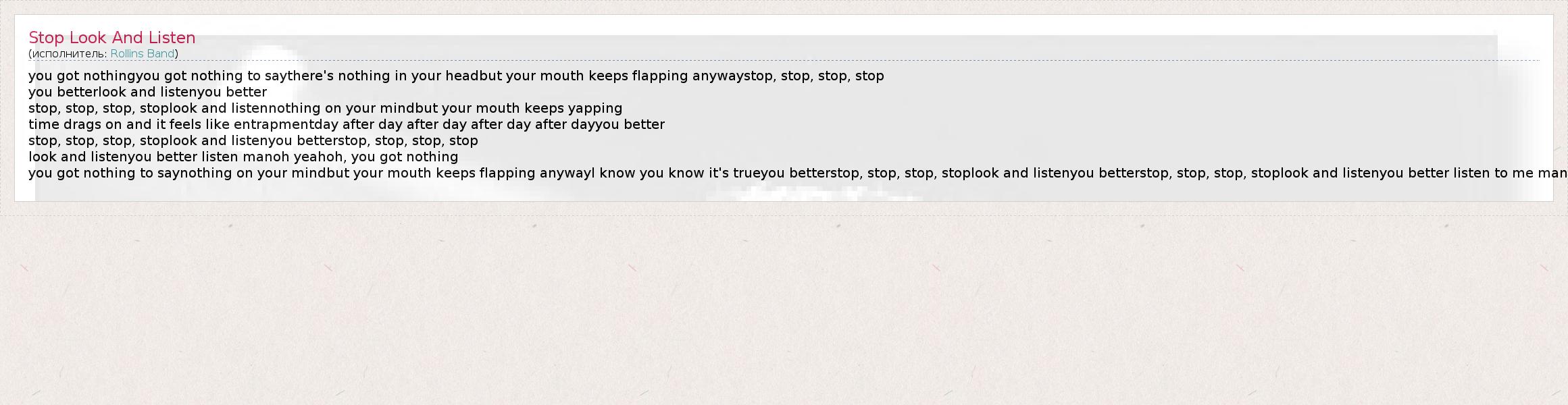 А как ты думаешь, о чем песня "Stop Look And Listen" ?