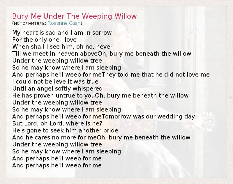 А как ты думаешь, о чем песня "Bury Me Under The Weeping Willow" ?