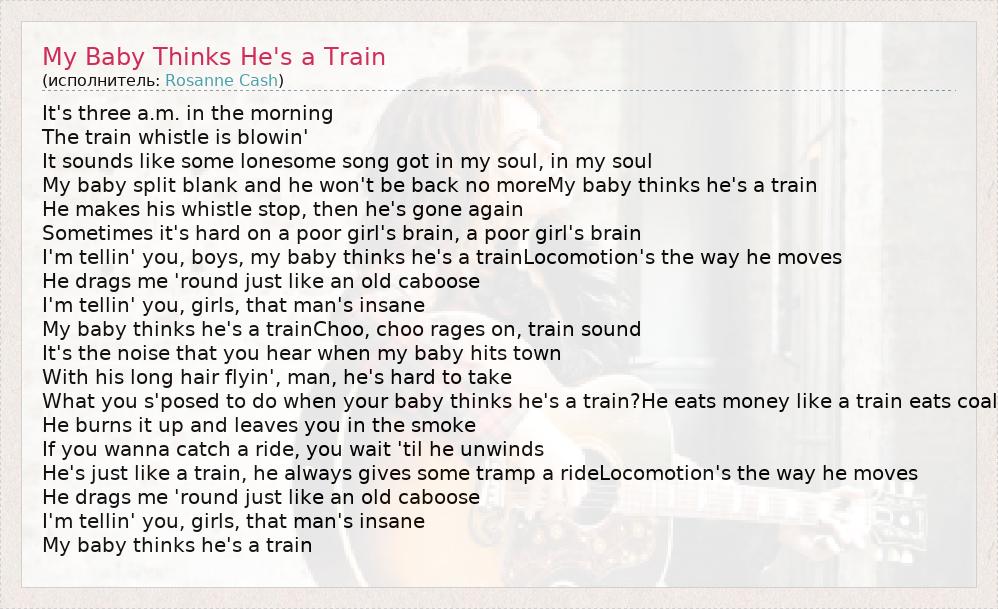 А как ты думаешь, о чем песня "My Baby Thinks He's a Train" ?