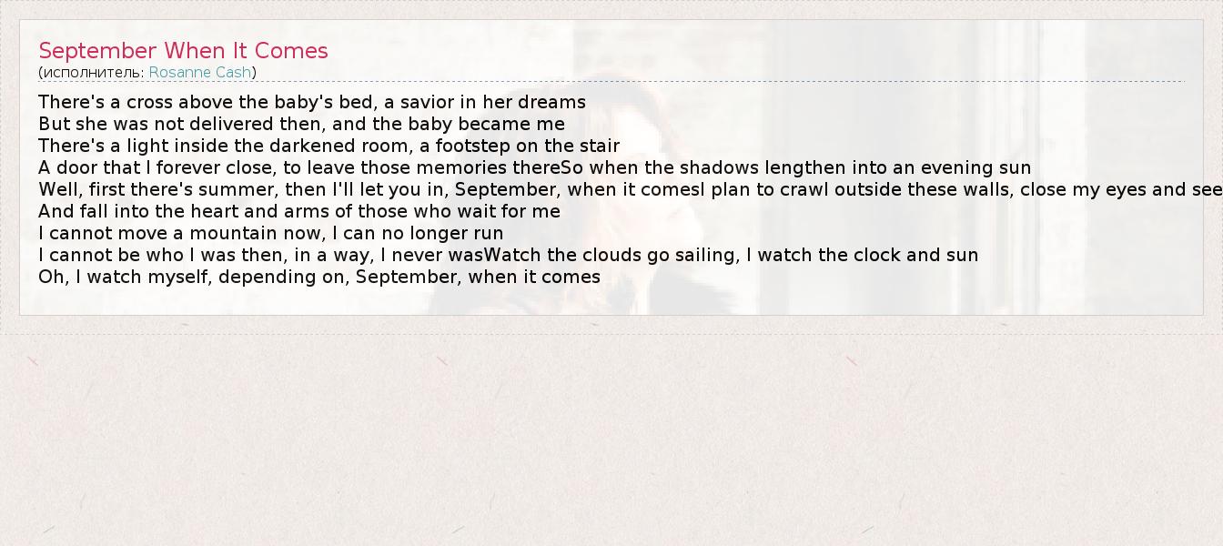 А как ты думаешь, о чем песня "September When It Comes" ?