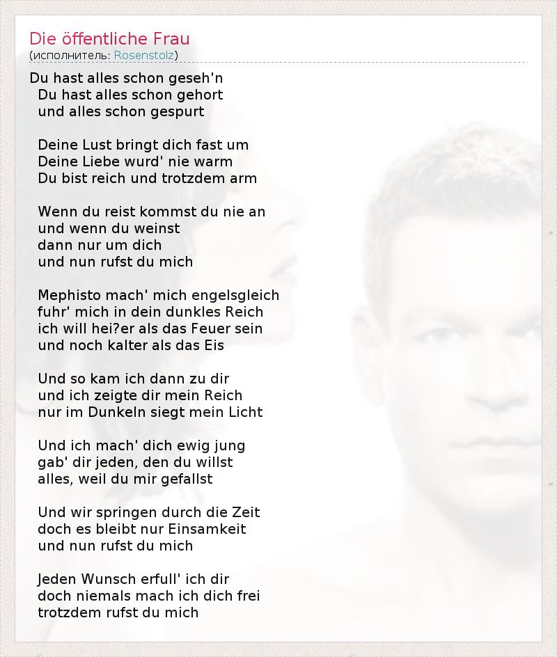 А как ты думаешь, о чем песня "Die öffentliche Frau" ?
