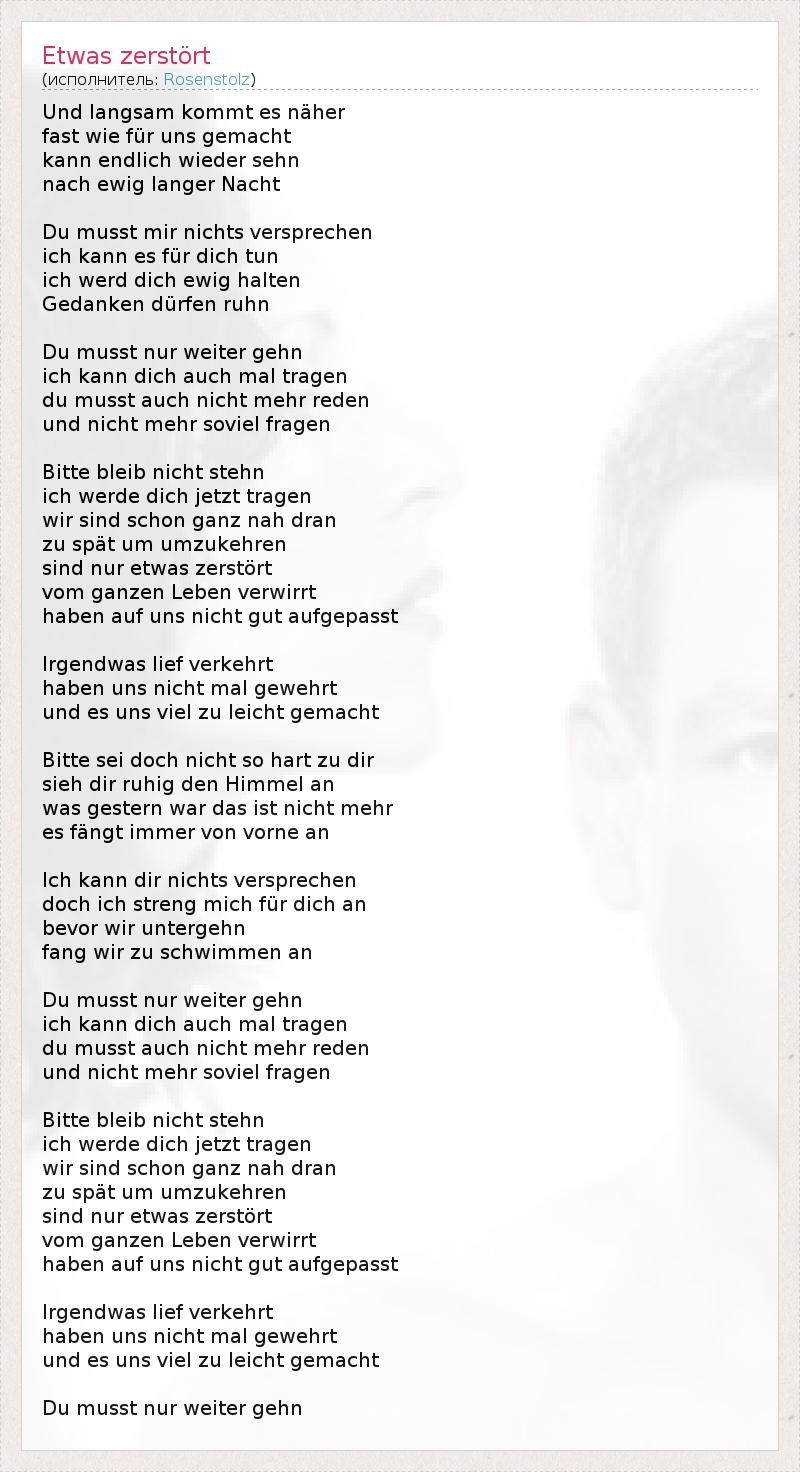 А как ты думаешь, о чем песня "Etwas zerstört" ?