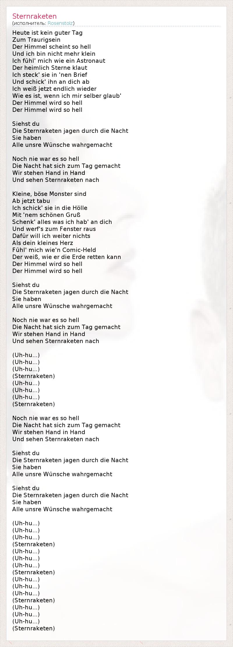 А как ты думаешь, о чем песня "Sternraketen" ?