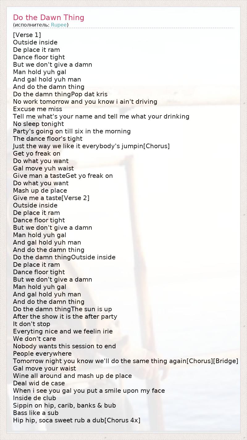 А как ты думаешь, о чем песня "Do the Dawn Thing" ?