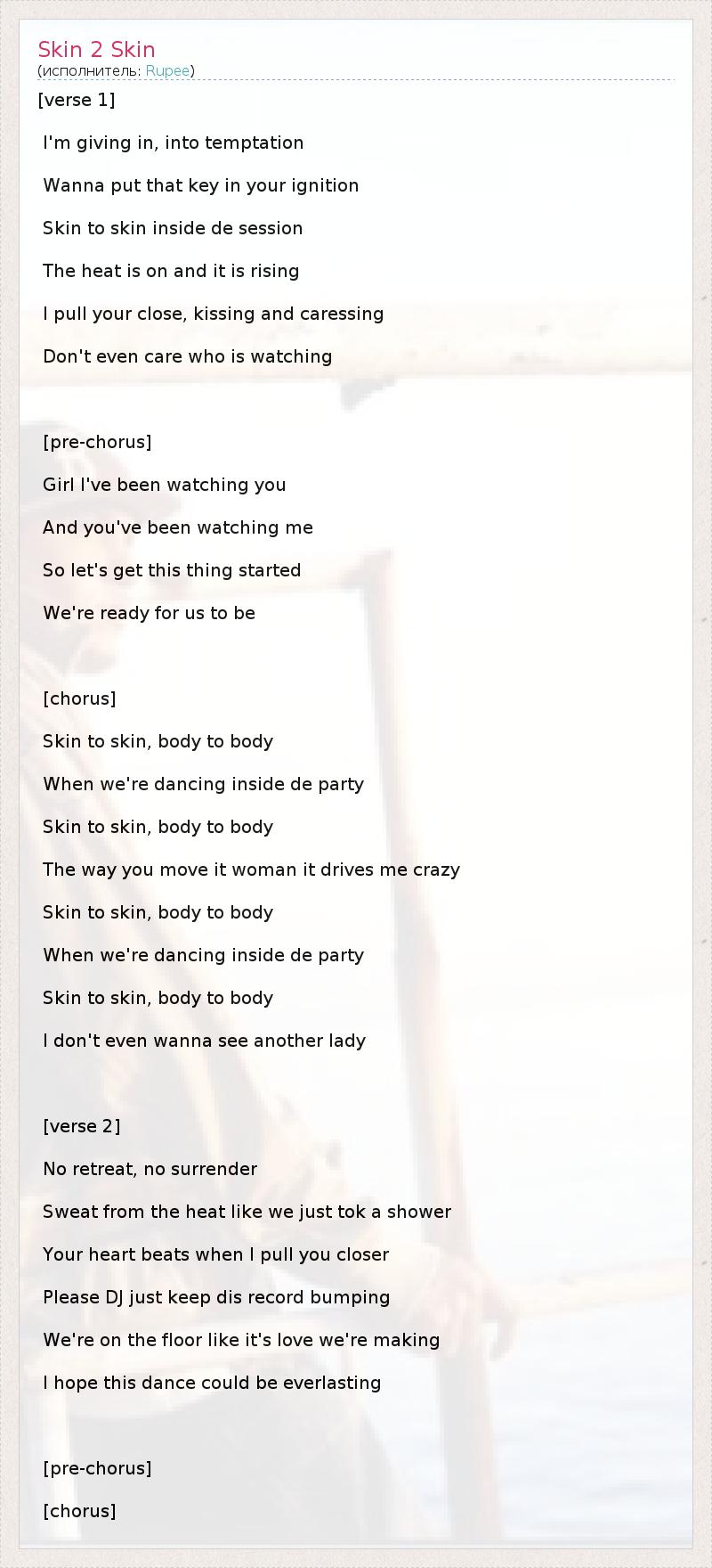 А как ты думаешь, о чем песня "Skin 2 Skin" ?
