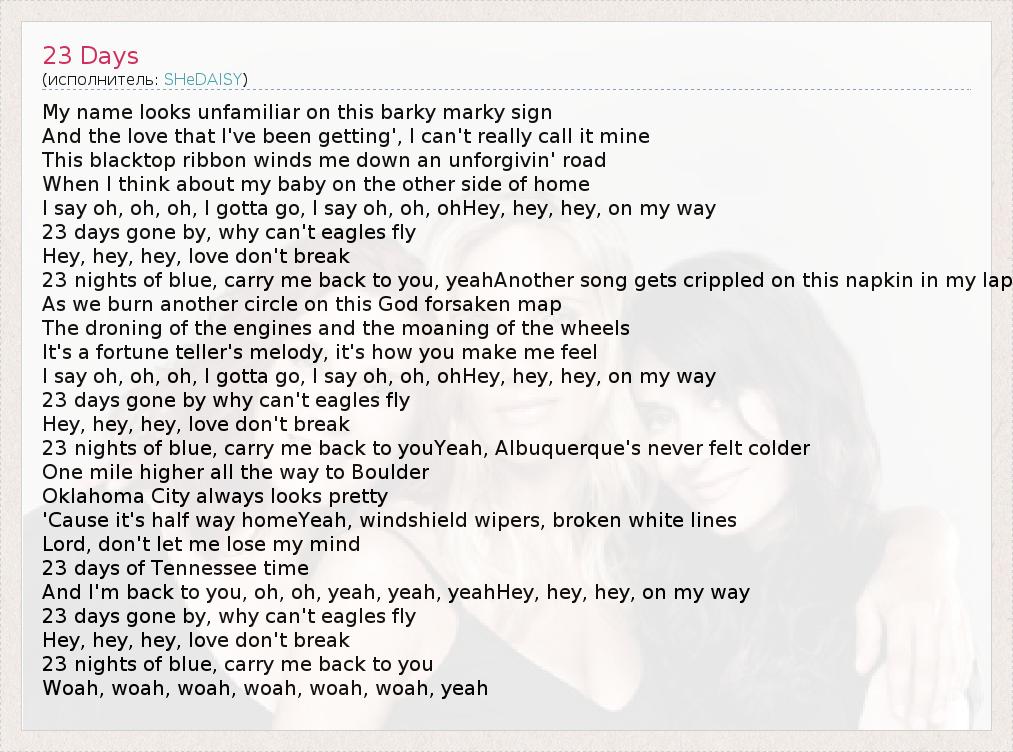 23 nights of blue, carry me back to you, yeahAnother song gets crippled on this napkin in my lap