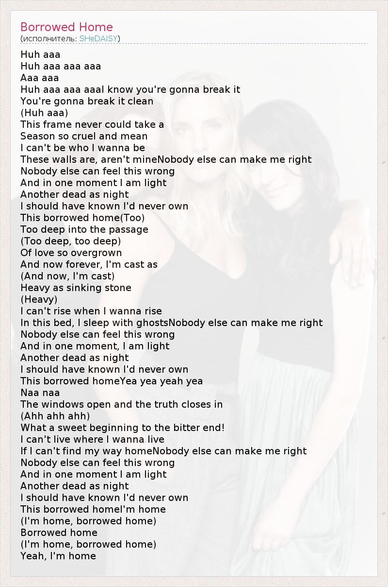 А как ты думаешь, о чем песня "Borrowed Home" ?