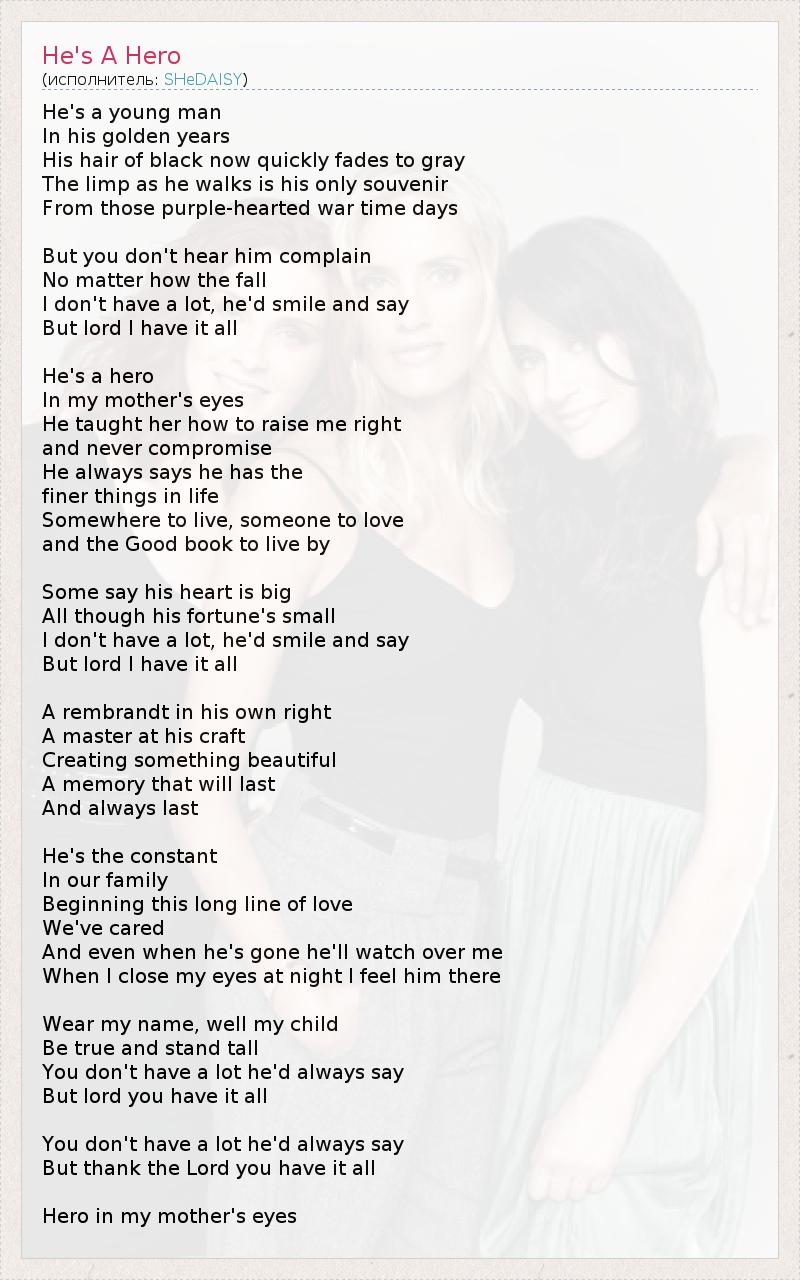 А как ты думаешь, о чем песня "He's A Hero" ?