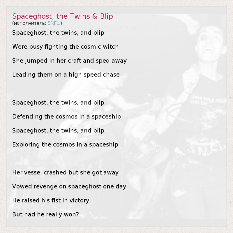 А как ты думаешь, о чем песня "Spaceghost, the Twins & Blip" ?