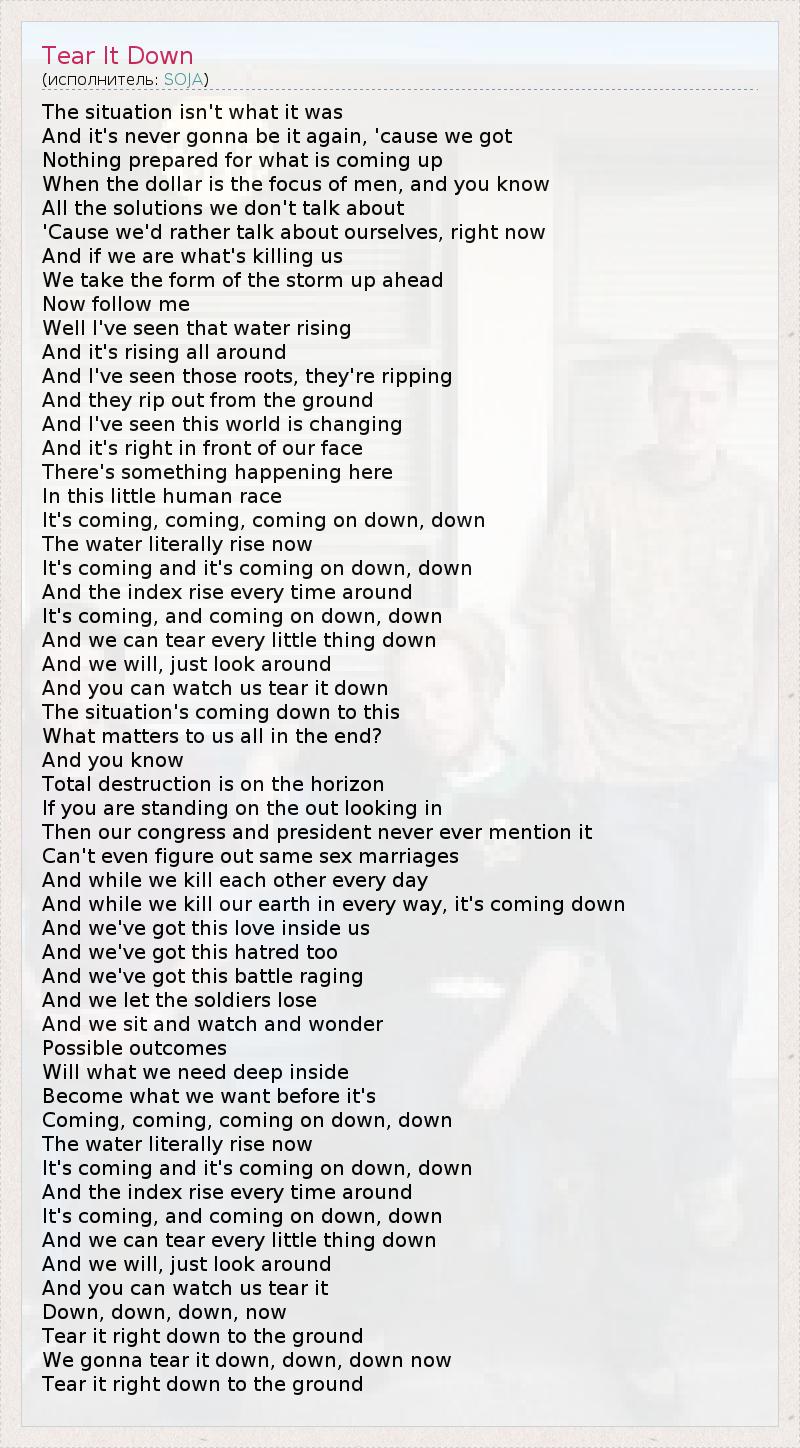 А как ты думаешь, о чем песня "Tear It Down" ?