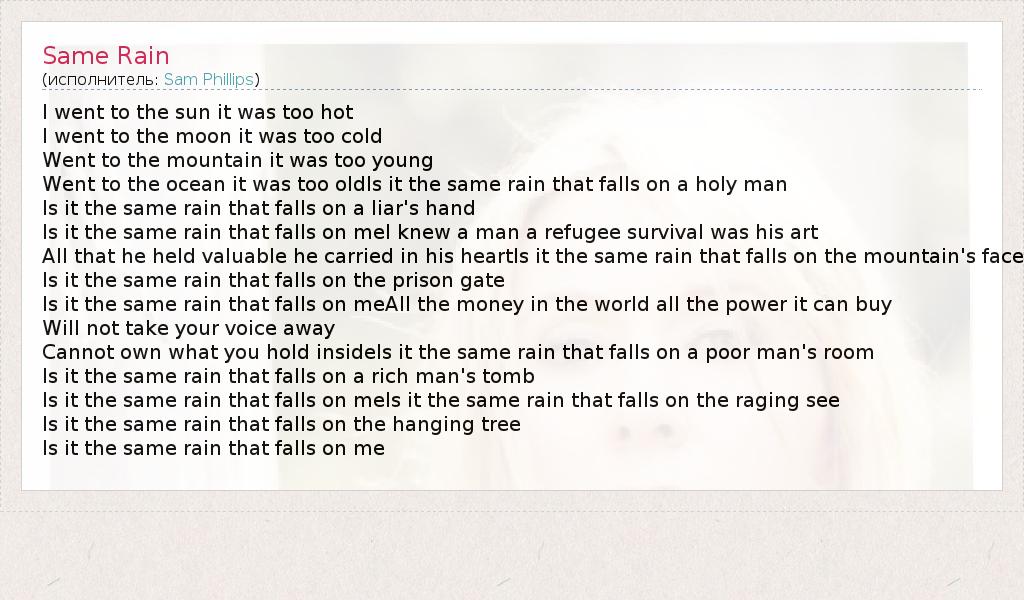 Went to the ocean it was too oldIs it the same rain that falls on a holy man