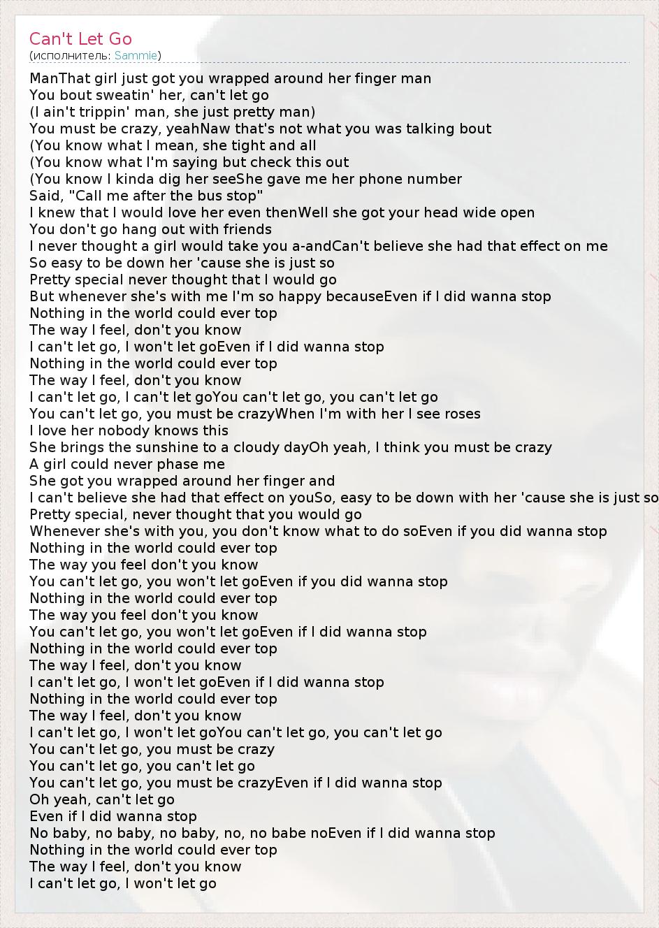 А как ты думаешь, о чем песня "Can't Let Go" ?